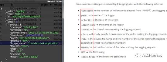 可以看到,除了基础的message字段是我们的日志内容,Logstash还为我们增加了许多字段。而在 https://www.elastic.co/guide/en/logstash/current/plugins-inputs-log4j.html 中也明确说明了这一点: