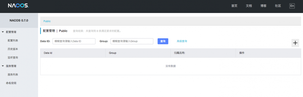 在启动都ok之后,我们可以访问Nacos的管理页面 http://127.0.0.1:8848/nacos/ 来查看服务列表,此时可以看到如下内容:
