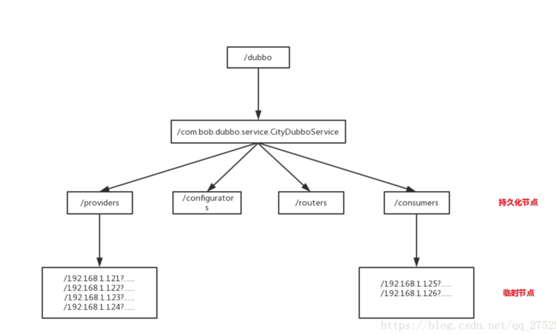 首先dubbo将服务注册到Zookeeper后,目录结构如下所示:(注册接口名:com.bob.dubbo.service.CityDubboService)