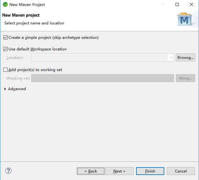File-->New-->Maven Project,选中Create a simple project(skip archetype selection) 点击Next,输入相应的groupId和ArtifactId,packaging修改为pom,点击完成,创建成功。此parent项目为整个springcloud的父项目,主要用于版本控制和公共jar包引入。