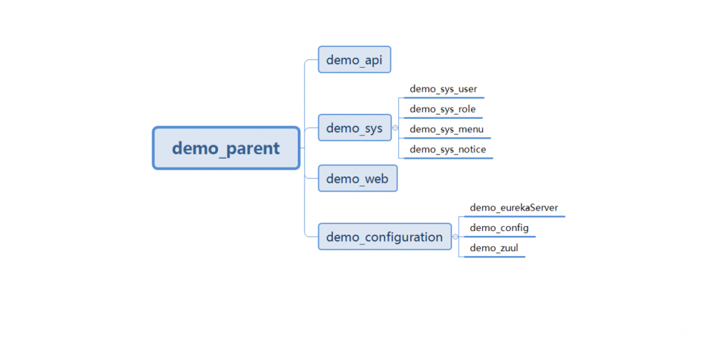 在此之前,我们可以先把简单的项目结构搭建起来,无非就是用maven创建多模块项目,不会的可以参考 maven多模块搭建步骤 这篇文章,完成后大致结构如下图所示: