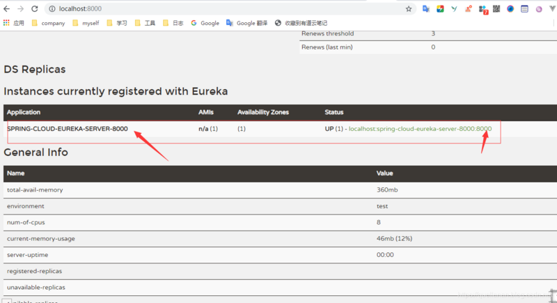 spring.application.name=spring-cloud-eureka-server-8000 server.port=8000 #表示是否将自己注册到Eureka Server,默认为true。 eureka.client.register-with-eureka=true # 表示是否从Eureka Server获取注册信息,默认为true。 eureka.client.fetch-registry=true #设置与Eureka Server交互的地址,查询服务和注册服务都需要依赖这个地址。多个地址可使用 , 分隔。 eureka.client.serviceUrl.defaultZone=http://localhost:8001/eureka/,http://localhost:8002/eureka/
