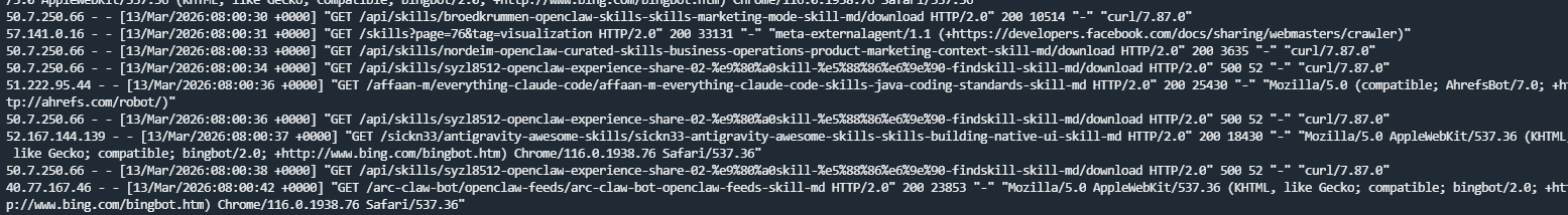 服务器日志里基本全是 curl 请求: