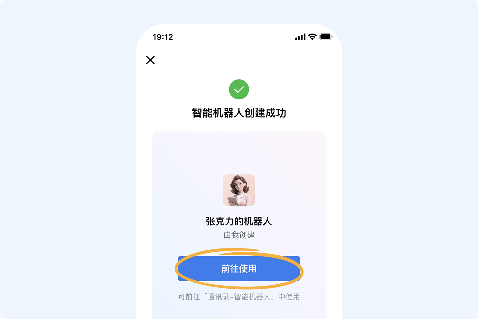 3. 点击一键创建智能机器人,成功创建机器人后,即可自动接入OpenClaw。此时你可点击前往使用并开始对话。